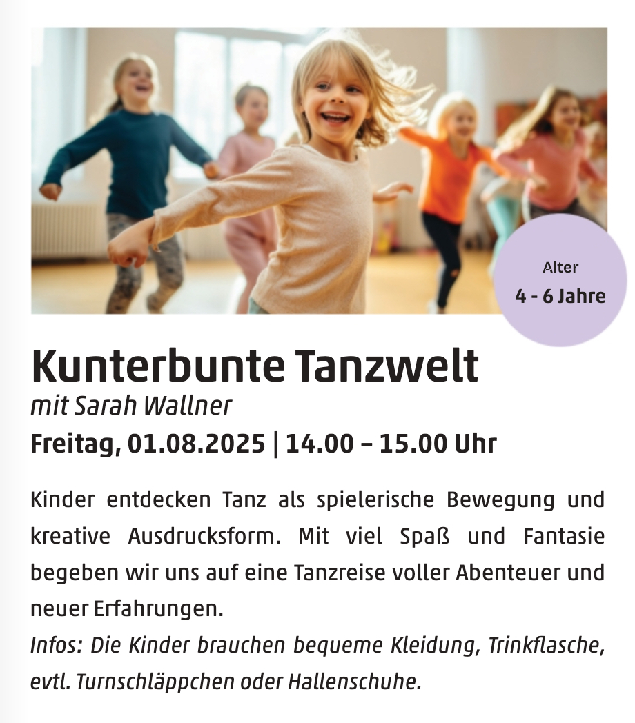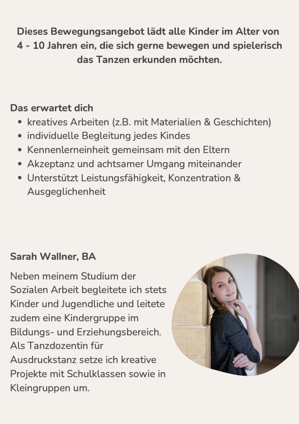 Bist du neugierig auf die spannende Welt des Tanzes? Dann mach mit und erlebe jede Menge Spaß, Bewegung und Kreativität!